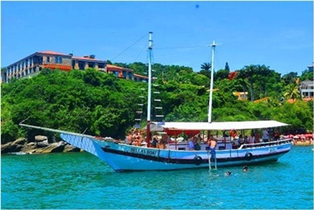 O passeio de escuna tem duração aproximada de 2h e conta com três paradas para mergulho: